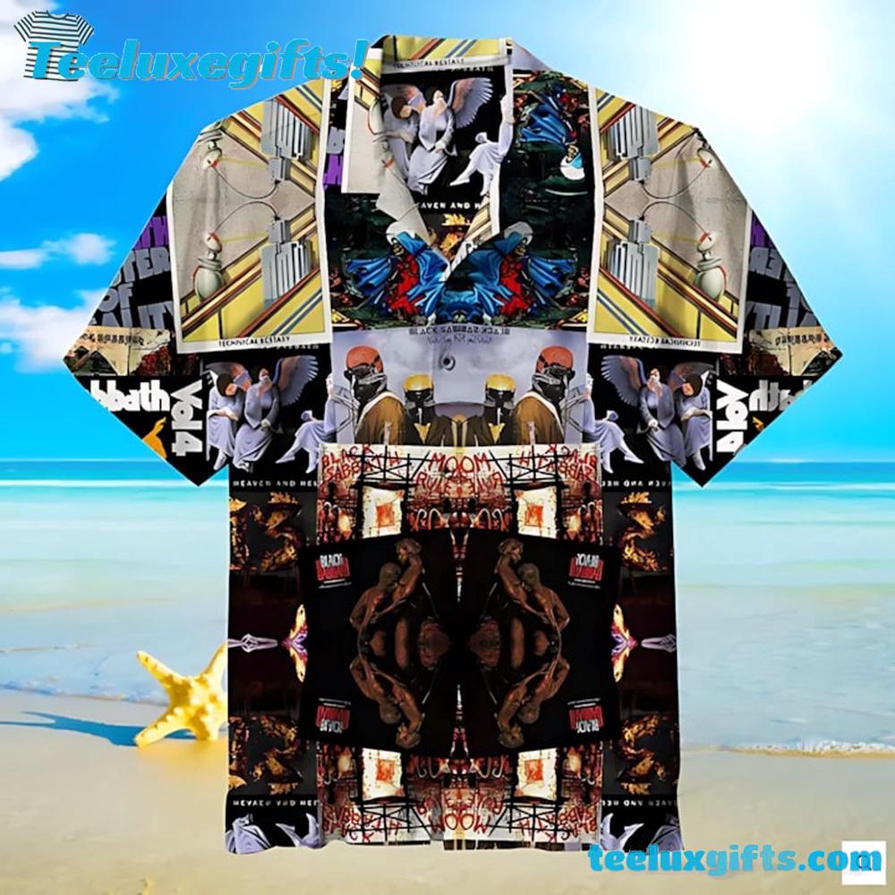 Black Sabbath Album Cover Collage Summer Aloha Hawaiian Shirt Introducing our Hawaiian Shirt, the perfect blend of comfort and vibrant style. Crafted from lightweight, breathable fabric, it keeps you cool and relaxed. Featuring bold, tropical prints, this shirt adds a touch of paradise to any wardrobe. Ideal for beach outings or casual gatherings, our Hawaiian Shirt brings the spirit of the islands to your everyday look.