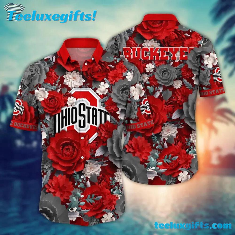 Photos Of NCAA Ohio State Buckeyes Aloha Flower Summer Hawaiian Shirt